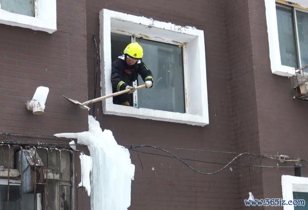 历程观望, 现场是住户楼楼谈口上方两层到三层位置有个大冰溜,随时有可能陨落,恫吓相差楼谈的住户安全。消防东谈主员系上安全绳,爬到三楼和二楼窗口,用钩镰枪、撬棍、铁锹等器具对吊挂在外的“冰溜子”少量一派进行撤消,同期,楼下队员实时进行告诫,退缩击碎的冰块砸伤行东谈主。历程消防东谈主员近一个多小时的不懈尽力,对存在安全隐患的“冰溜子”进行了撤消。